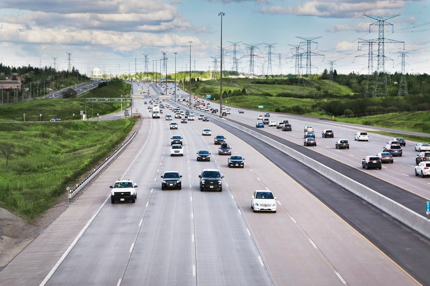 By using 407 ETR, drivers emit 108,000 fewer metric tonnes of CO2 each year. This is due to higher, consistent speeds that are closer to the speed at which emissions are minimized compared to the prevailing speeds on the congested toll-free alternative highways and major roads.